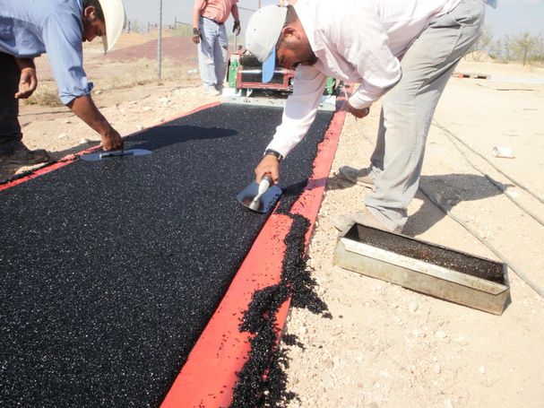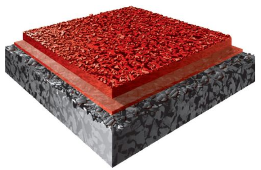 Pave in place base layer & impermeable broadcast wear layer.